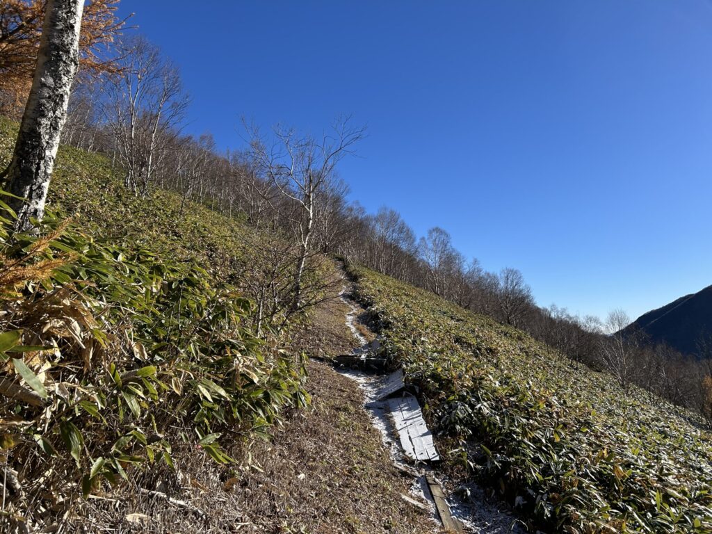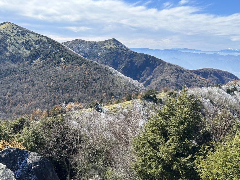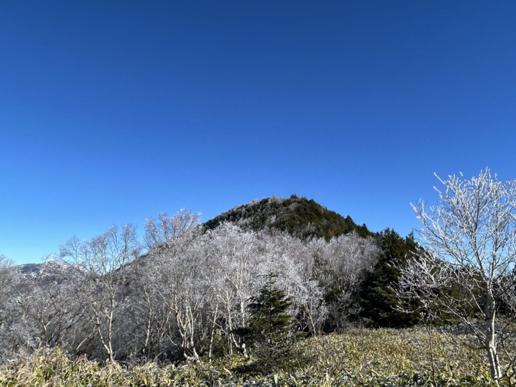 周りの山々、木々の紅葉、山頂からの展望、そして霧氷と多くの景色を楽しみつつ、気軽に歩ける良い山です。