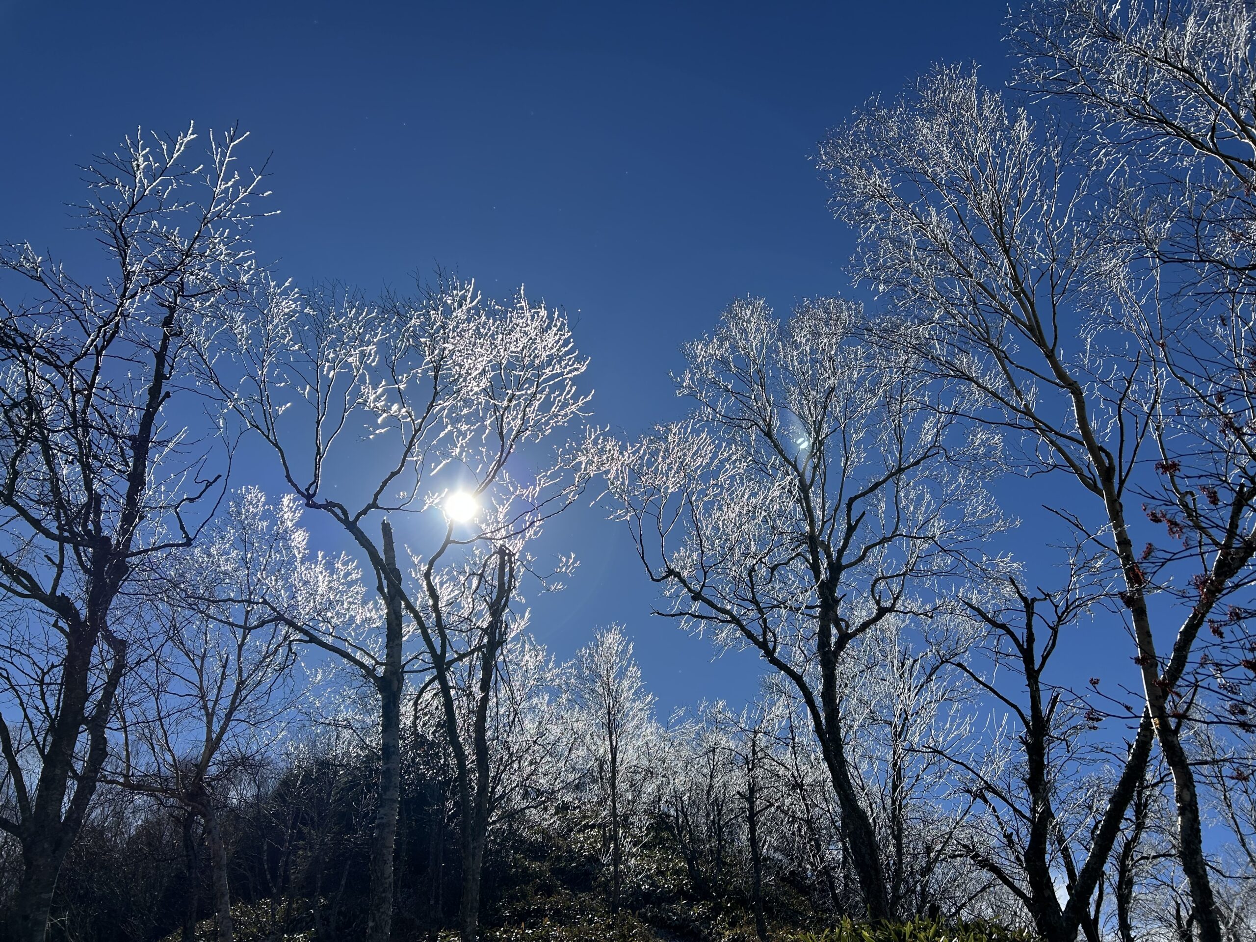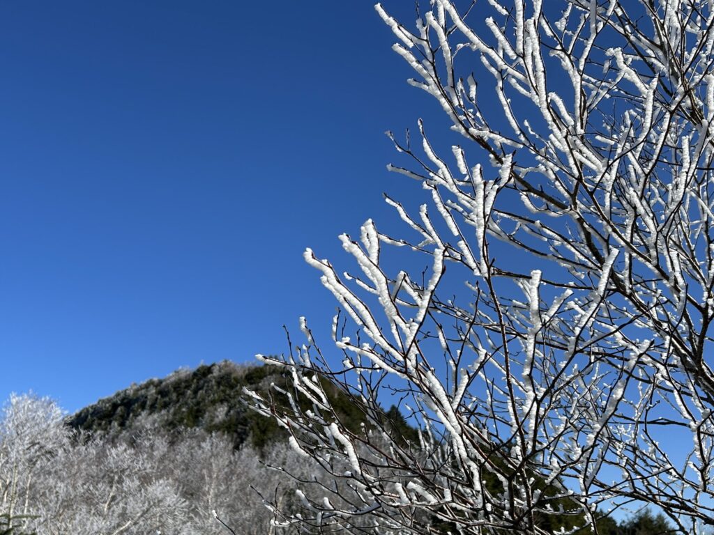 角間山をバックに美しい霧氷が見られました